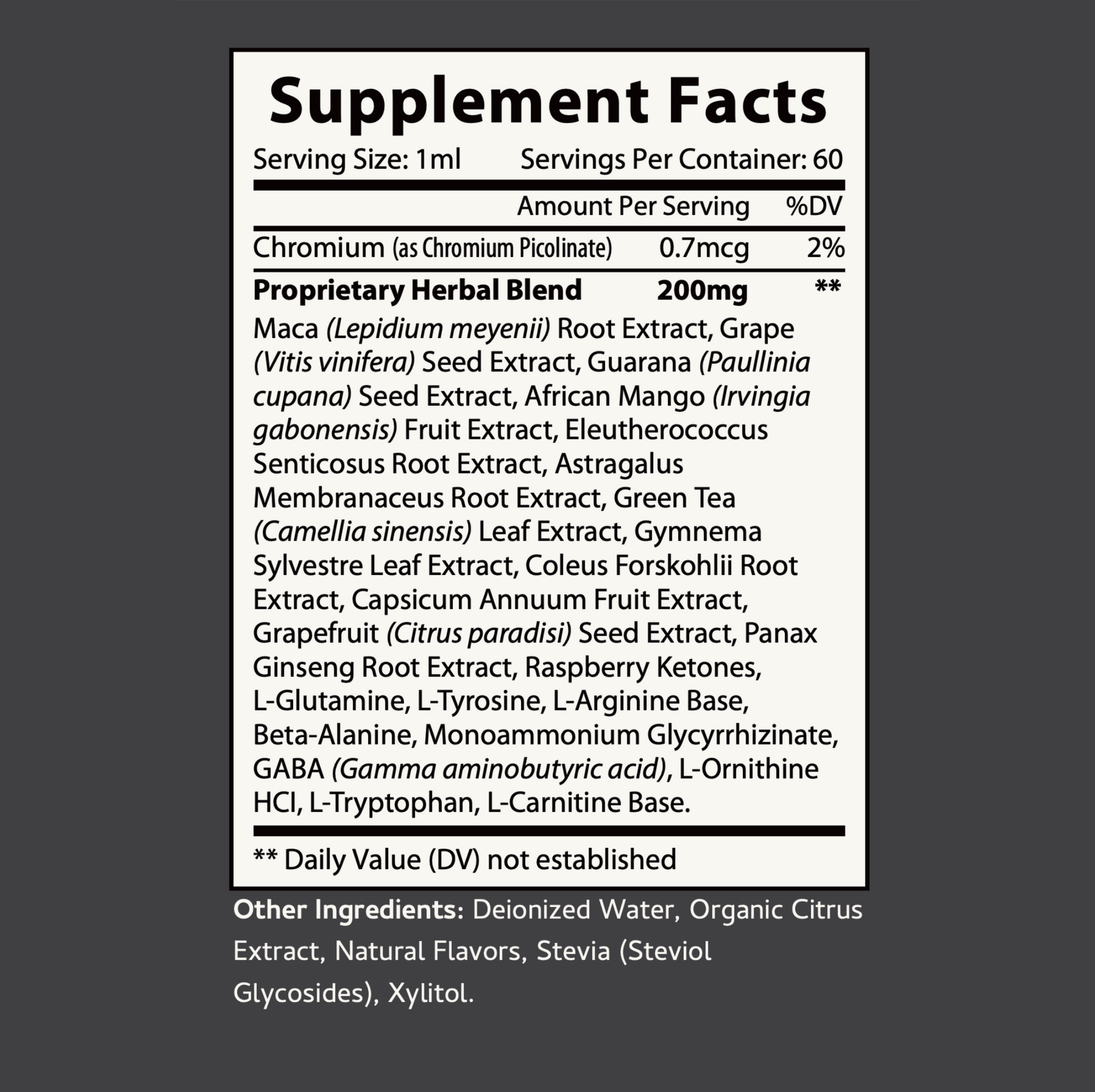 Key Ingredients: Raspberry Ketones, African Mango, Green Tea Extract, Caffeine Anhydrous, Apple Cider Vinegar, Iodine/Kelp, Grape Seed Extract.